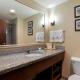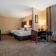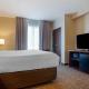 This room includes a separate seating area with a sofa bed and a flat-screen TV with premium cable channels. A microwave, small refrigerator and coffee maker are also provided.
