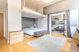 Rooms: 1This spacious apartment consists of 2 bedrooms, a kitchen and 2 bathrooms with a bath and a hairdryer. Guests can make meals in the kitchen that is equipped with a refrigerator, a dishwasher, kitchenware and an oven. The air-conditioned apartment provides a TV, a coffee machine, a dining area, heating as well as city views. The unit provides 3 beds.