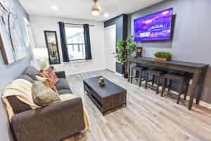 Questo appartamento con aria condizionata comprende 2 camere da letto, un soggiorno, una cucina con utensili, frigorifero e bollitore elettrico, e 1 bagno con vasca da bagno e asciugacapelli. Asciugamani e lenzuola sono inclusi nei servizi di Comfy 2BR Walkable Fast Wi-Fi Sleeps 6.