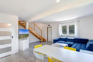Featuring a private entrance, this holiday home is comprised of 1 living room, 2 separate bedrooms and 1 bathroom with a walk-in shower and a hairdryer. Guests will find a stovetop, a refrigerator, a dishwasher and kitchenware in the well-equipped kitchen. The holiday home also has a barbecue. Boasting a terrace with garden views, this holiday home also offers a washing machine and a flat-screen TV. The unit offers 5 beds.