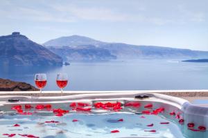 Perched on the Caldera, this villa opens to a spacious balcony with hot tub and panoramic views over the Volcano and the Aegean Sea. It includes: -2 bedrooms -an open-plan kitchen with living and dining area -a bathroom with built-in shower, bathrobes and slippers -a fireplace in the living room. -a flat-screen TV with satellite channels. Breakfast items are provided daily in the villa, while complimentary wine and fruits are offered upon arrival. Daily cleaning service is provided.