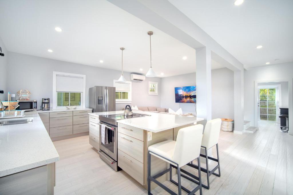 This spacious holiday home comprises 3 bedrooms, kitchen and 2 bathrooms with a hairdryer. Guests can make meals in the kitchen that is equipped with a stovetop, a refrigerator, a dishwasher and kitchenware. The air-conditioned holiday home provides a TV with cable channels, a washing machine, a tea and coffee maker, a dining area as well as sea views. The unit provides 3 beds.