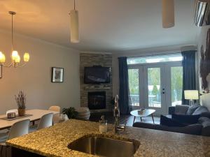 This self-catering 2 bedroom condo-hotel boasts impressive mountain view, a garden, a seasonal heated outdoor pool and a complimentary ski shuttle to Bromont Mountain, located less than 1 km away. A living area with fireplace, a fully equipped kitchen and laundry facilities are included. Free parking is available. Conveniently located and walking distance to restaurants, bars, coffee shops, grocery store, SAQ and pharmacy. CITQ # 248183