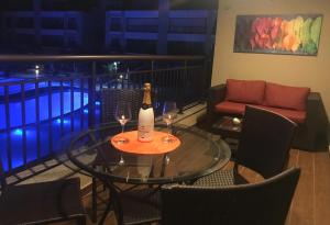 This luxurious apartment has a pool with a view, a spa bath and a sauna. This spacious apartment comes with 1 living room, 3 separate bedrooms and 3 bathrooms with a shower and free toiletries. Guests will find a stovetop, a refrigerator, kitchenware and an oven in the fully equipped kitchen. The apartment also includes a barbecue. The air-conditioned apartment features a flat-screen TV with cable channels, a washing machine, a private entrance, a tea and coffee maker as well as garden views. The unit has 5 beds.