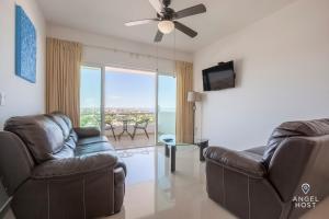 Boasting a private entrance, this spacious apartment also comes with 2 separate bedrooms and 2 bathrooms with a shower and a hairdryer. The well-equipped kitchen has a stovetop, a refrigerator, a dishwasher and kitchenware. The air-conditioned apartment features a TV, a washing machine, a tea and coffee maker, a dining area as well as sea views. The unit has 2 beds.