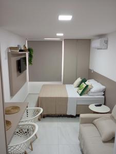 Klimatizovaný apartmán Conforto & Beleza - 300m da praia nabízí TV s plochou obrazovkou, 1 ložnici a obývací pokoj. Toto ubytování má kuchyň.