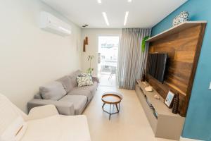 Die klimatisierte Ferienwohnung im Conforto à beira-mar umfasst 3 Schlafzimmer, ein Wohnzimmer, eine Küche mit Kühlschrank und Wasserkocher sowie 2 Bäder mit Dusche und Föhn. In dieser Ferienwohnung werden Handtücher und Bettwäsche zur Verfügung gestellt.