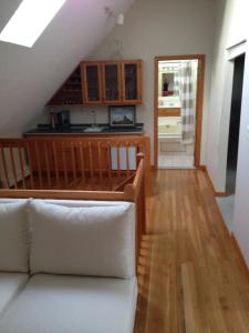 - Small kitchen area,