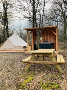 The hot tub is a top feature of this tent. Guests will find a stovetop, a refrigerator and kitchenware in the kitchen. The tent also includes a barbecue. The tent features a private entrance, a tea and coffee maker, a terrace with lake views as well as a private bathroom boasting a shower. The unit has 1 bed.