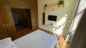 Apartmán Copacabana - 300m da Praia - Ônibus na porta je vybaven 1 ložnicí, TV s plochou obrazovkou, klimatizací a obývacím pokojem.