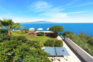 Questa villa presenta 3 camere da letto, 4 bagni, lenzuola, asciugamani, una TV con canali satellitari, una cucina con utensili e una terrazza con la vista sul mare.