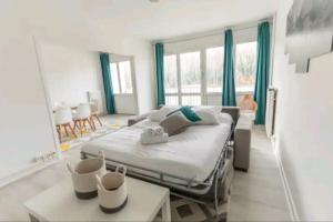 The kitchen is equipped with a refrigerator, kitchenware and a microwave. The spacious apartment provides a flat-screen TV, a washing machine, a tea and coffee maker, a seating area as well as city views. The unit offers 3 beds.