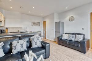 El apartamento cuenta con terraza y vistas a la ciudad, y tiene 2 dormitorios, una sala de estar, TV de pantalla plana, una cocina equipada con nevera y horno, y 1 baño con ducha. El apartamento Cosy Central 2-Bed Flat City View & Parking dispone de toallas y ropa de cama.
