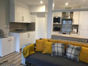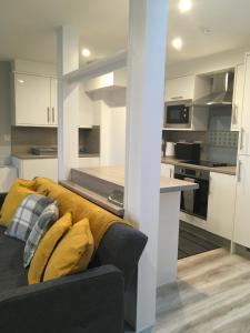 The well-equipped kitchen has a stovetop, a refrigerator, kitchenware and an oven. The apartment features carpeted floors, a seating area with a flat-screen TV, a private entrance, a wardrobe as well as sea views. The unit offers 3 beds.