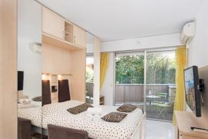 Tento klimatizovaný apartmán COSY STUDIO - Résidence front de mer - Menton má 1 ložnici, posezení, TV s plochou obrazovkou a kuchyň s lednicí. Apartmán ubytování poskytuje hostům ručníky a ložní prádlo.