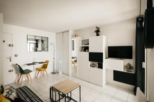 Apartmán Cosy T1, à 10 minutes à pieds des plages disponuje 1 ložnicí, obývacím prostorem a plně vybavenou kuchyní s lednicí a troubou. Apartmán Cosy T1, à 10 minutes à pieds des plages poskytuje hostům ručníky a ložní prádlo.