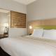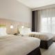 This room includes a cable TV, an alarm clock, and coffee facilities.