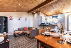 The spacious apartment with a terrace and garden views has 3 bedrooms, a living room, a flat-screen TV, an equipped kitchen with a microwave and a fridge, and 2 bathrooms with a bath. Towels and bed linen are offered at Countryside log cabin with HOT TUB!. Countryside log cabin with HOT TUB! includes an outdoor dining area.