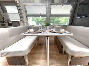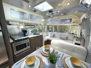 Las unidades de Cozy & Fun Airstream Camper Near Downtown & Beach cuentan con aire acondicionado, baño privado y cocina con nevera, horno, microondas y fogones.