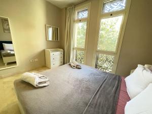 La maison de vacances du Cozy 1BD in Mangroovy El Gouna dispose d'une chambre, d'une télévision à écran plat, de la climatisation et d'un salon.