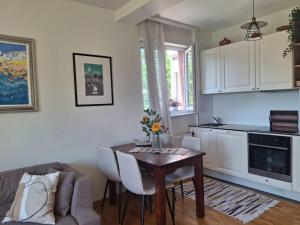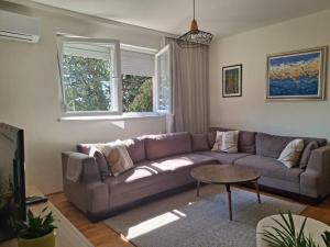 The well-fitted kitchen features a stovetop, a refrigerator, a dishwasher and kitchenware. The apartment has parquet floors, a seating area with a flat-screen TV with cable channels, air conditioning, a washing machine, as well as a dining area. The unit has 3 beds.