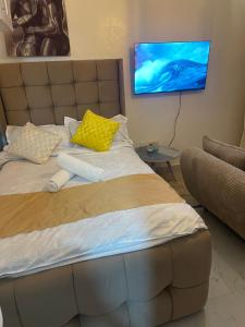 Chambres: 1La cuisine de cet appartement est accessible pour cuisiner et stocker des aliments. L'appartement est doté d'une télévision à écran plat et propose 1 lit.