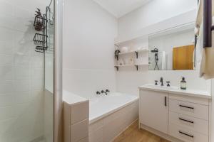 W domu wakacyjnym zapewniono kilka sypialni (2), kuchnię z lodówką i piekarnikiem, a także łazienkę (1) z wanną, bezpłatnym zestawem kosmetyków oraz pralką. W domu wakacyjnym Cozy Newtown 2 bedroom unit dla Gości przygotowano ręczniki i pościel.