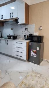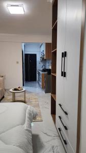 Apartmán Cozy Studio in Kilimani near Yaya Center zahrnuje 1 ložnici, TV s plochou obrazovkou a kuchyň.