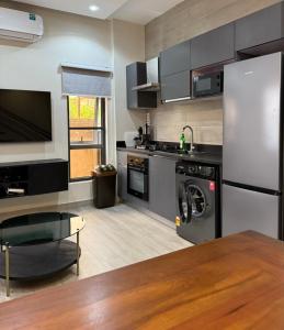 Featuring a private entrance, this air-conditioned holiday home comprises 1 living room, 2 separate bedrooms and 3 bathrooms with a walk-in shower. Meals can be prepared in the well-fitted kitchenette, which comes with a refrigerator, an oven and a microwave. This holiday home features a washing machine, a tiled floor and a flat-screen TV. V této ubytovací jednotce je k dispozici 3 postele.