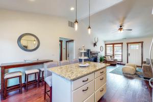 This holiday home features a fireplace. This spacious holiday home features 1 living room, 3 separate bedrooms and 2 bathrooms with a hairdryer and free toiletries. The fully equipped kitchen has a stovetop, a refrigerator, a dishwasher and kitchenware. This air-conditioned holiday home comes with a dining area, a flat-screen TV with cable channels a washing machine and a patio. The unit has 7 beds.