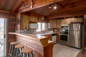 A flat-screen TV and sofa are provided. A kitchen, dining area, fireplace, spa bath and laundry facilities are included. A terrace with BBQ facilities is included.