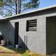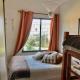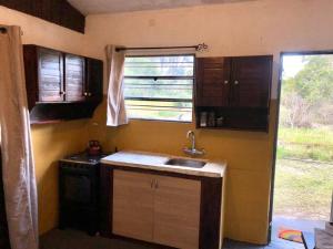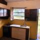 Dieses Ferienhaus mit Klimaanlage und 1 Schlafzimmer verfügt über Sitzplätze, Flachbild-TV und eine Küche mit einem Kühlschrank.