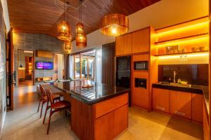 Questa villa con aria condizionata comprende 2 camere da letto, un soggiorno, una cucina con utensili, frigorifero e bollitore elettrico, e 2 bagni con bidet e doccia. Presso Da Blumen Villa Ubud by Omkara Experience avrete a disposizione lenzuola e asciugamani.
