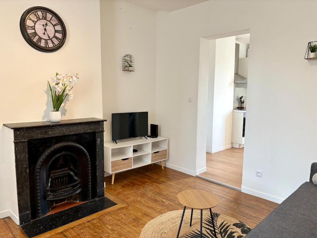 Die 1-Zimmer-Wohnung im Dalikyda - Le Charme - Wifi - Parking Privée bietet ein Wohnzimmer mit Flachbild-TV sowie eine voll ausgestattete Küche.