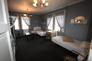 Individually decorated room with a wardrobe and shared bathroom facilities.
