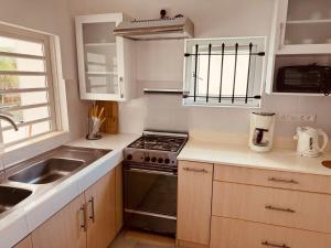 Zur Einrichtung des Dan Beach Apartment gehören ein Schlafzimmer, ein Flachbild-TV und eine Küche.