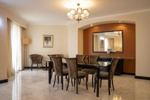 Modern room with a balcony offering a view of Hafeet Mountain. Facilities include a flat-screen TV, a telephone, ironing and a minibar. The bathroom is fitted with a bath, shower and hairdryer.