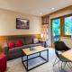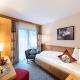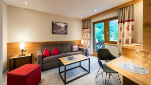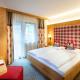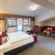 Pokoje a apartmá v alpském stylu mají balkon, posezení, TV a koupelnu s župany.