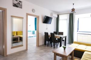 Boasting a private entrance, this air-conditioned apartment includes 1 living room, 1 separate bedroom and 1 bathroom with a shower and a hairdryer. In the well-fitted kitchen, guests will find a stovetop, a refrigerator, kitchenware and a microwave. Featuring a terrace with garden views, this apartment also offers a washing machine and a flat-screen TV. V této ubytovací jednotce se nachází 2 postele.