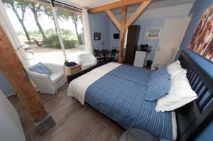 This room is located on the ground floor and has a view on the garden. It features a seat, refrigerator, TV and tea-and-coffee-making facilities. A shower is fitted in the bathroom.