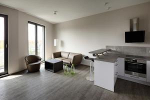 The apartment features soundproof walls, a coffee machine, as well as a private bathroom boasting a walk-in shower and a hairdryer. Guests can make meals in the kitchen that features a stovetop, a refrigerator, a dishwasher and kitchenware. The apartment has parquet floors, a seating area with a flat-screen TV, a dining area, a wardrobe, as well as a sofa. The unit has 1 bed.