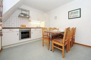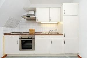 Diese Ferienwohnung ist versehen mit einem Flachbild-TV. Die Küchenzeile ist eingerichtet mit einem Kühlschrank und einem Ofen, einer Mikrowelle sowie einer Kaffeemaschine und einem Wasserkocher.