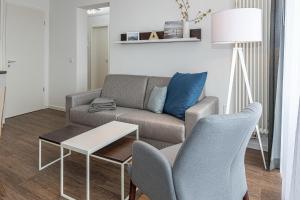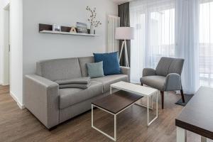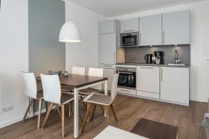 This 2-bedroom apartment at Deichhäuser Anna Küste Deichhäuser Anna Küste 7-31 includes a living room with a flat-screen TV, a bathroom with a hair dryer, and a fully equipped kitchen with an oven and dishwasher. Guests at the property can enjoy the surroundings from the outdoor dining area.