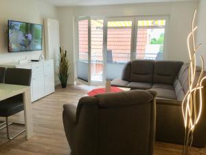Apartmán Deichnähe B zahrnuje 1 ložnici, plně vybavenou kuchyň s lednicí a myčkou a 1 koupelnu se sprchou. V apartmánu ubytování nechybí TV a koupelna s fénem.