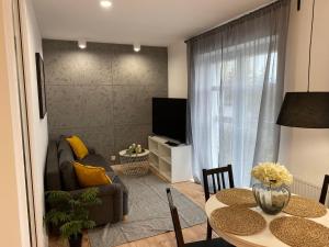 Featuring a private entrance, this apartment comprises 1 living room, 1 separate bedroom and 1 bathroom with a shower and a hairdryer. Meals can be prepared in the well-fitted kitchen, which comes with a stovetop, a refrigerator, a dishwasher and kitchenware. The apartment provides a flat-screen TV with satellite channels, a washing machine, a tea and coffee maker, a seating area as well as garden views. The unit offers 2 beds.