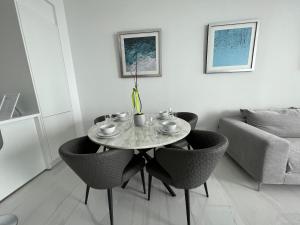 Apartmán Del Mar Beachfront Boutique Residence poskytuje 2 ložnice, 2 koupelny, ložní prádlo, ručníky, satelitní TV s plochou obrazovkou, jídelní kout a plně vybavenou kuchyň. Hosté ubytování ubytování mohou využívat terasu s výhledem na moře. Koupelna v ubytování je vybavena bidetem, fénem, pantoflemi a toaletními potřebami zdarma.