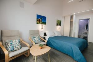 Questo appartamento presenta 1 camera da letto, una TV a schermo piatto con canali satellitari, un angolo cottura con frigorifero e microonde e 1 bagno con doccia. Lenzuola e asciugamani sono a vostra disposizione presso Delightful Seaside Studio Apartment D - Faraway.