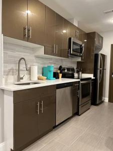 In the kitchen, guests will find a stovetop, a refrigerator, a dishwasher and kitchenware. The apartment offers air conditioning, a washing machine, a private entrance, soundproof walls and a flat-screen TV with streaming services. The unit offers 2 beds.