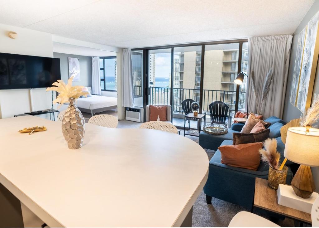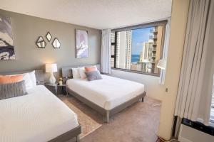 Obiekt Deluxe Ocean View Condo 2 Queen Beds in Waikiki, FREE Parking & Wi-Fi znajduje się w miejscowości Honolulu i oferuje taras, odkryty basen, bezpłatne Wi-Fi oraz bankomat. Odległość od ważnych miejsc: Plaża Kuhio Beach - 400 m. Prywatny parking znajduje się na terenie posesji.