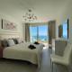 Klimatizovaný apartmán Deluxe sea view apartment with a swimming pool zahrnuje 2 ložnice, obývací pokoj, plně vybavenou kuchyň s lednicí a myčkou a 2 koupelny. V koupelně ubytování ubytování nechybí sprcha ani fén. V ubytování ubytování jsou pro hosty připraveny ručníky a ložní prádlo.